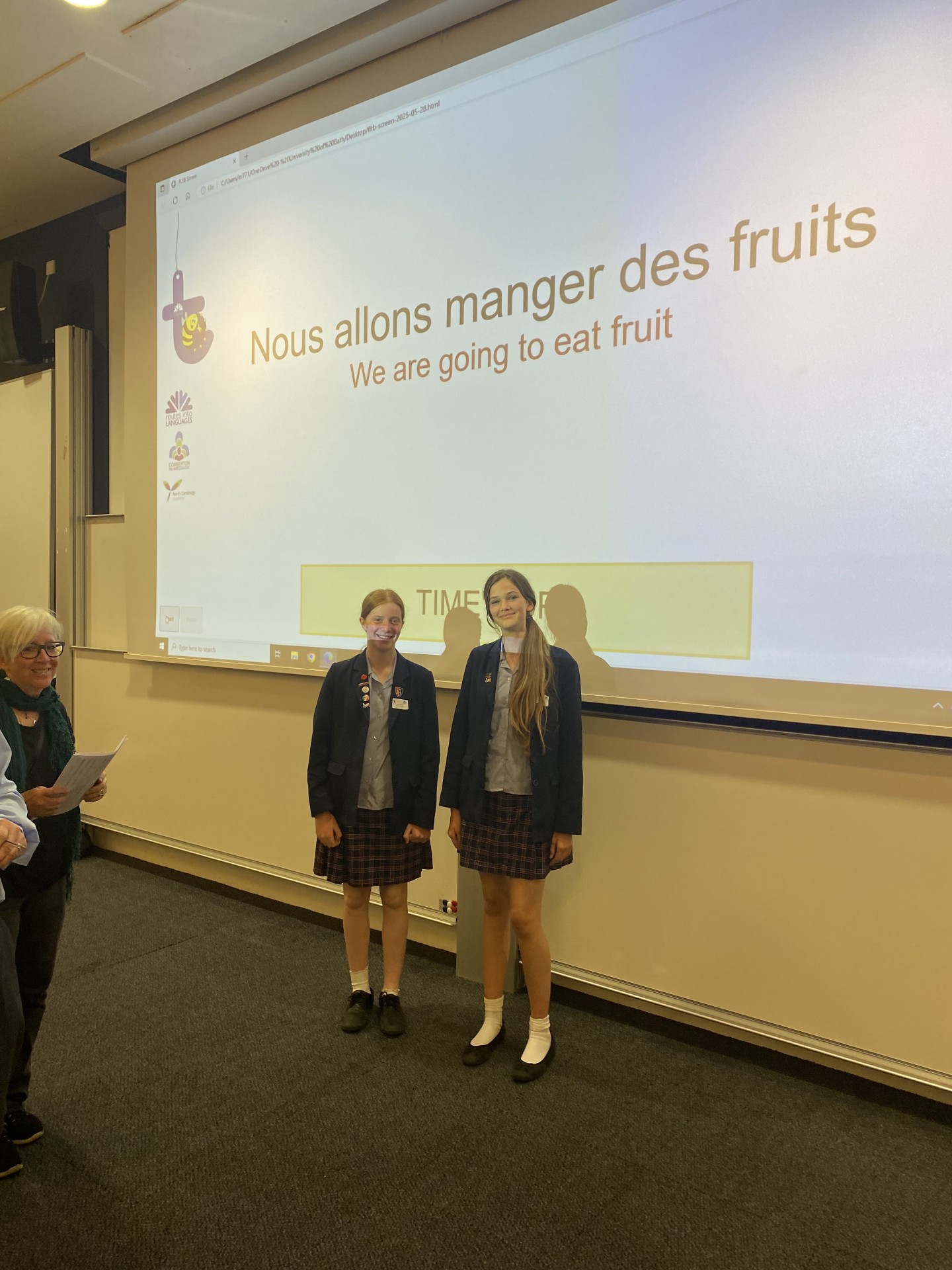Seren and Isla were challenged to translate as many sentences as possible from English into French within just one minute—a true test of speed, accuracy, and language skill. Madame Hazelton and Señora Snell were incredibly proud to watch the girls perform with such confidence in front of a full auditorium. It takes real courage to compete in a foreign language under pressure. Bravo les filles!