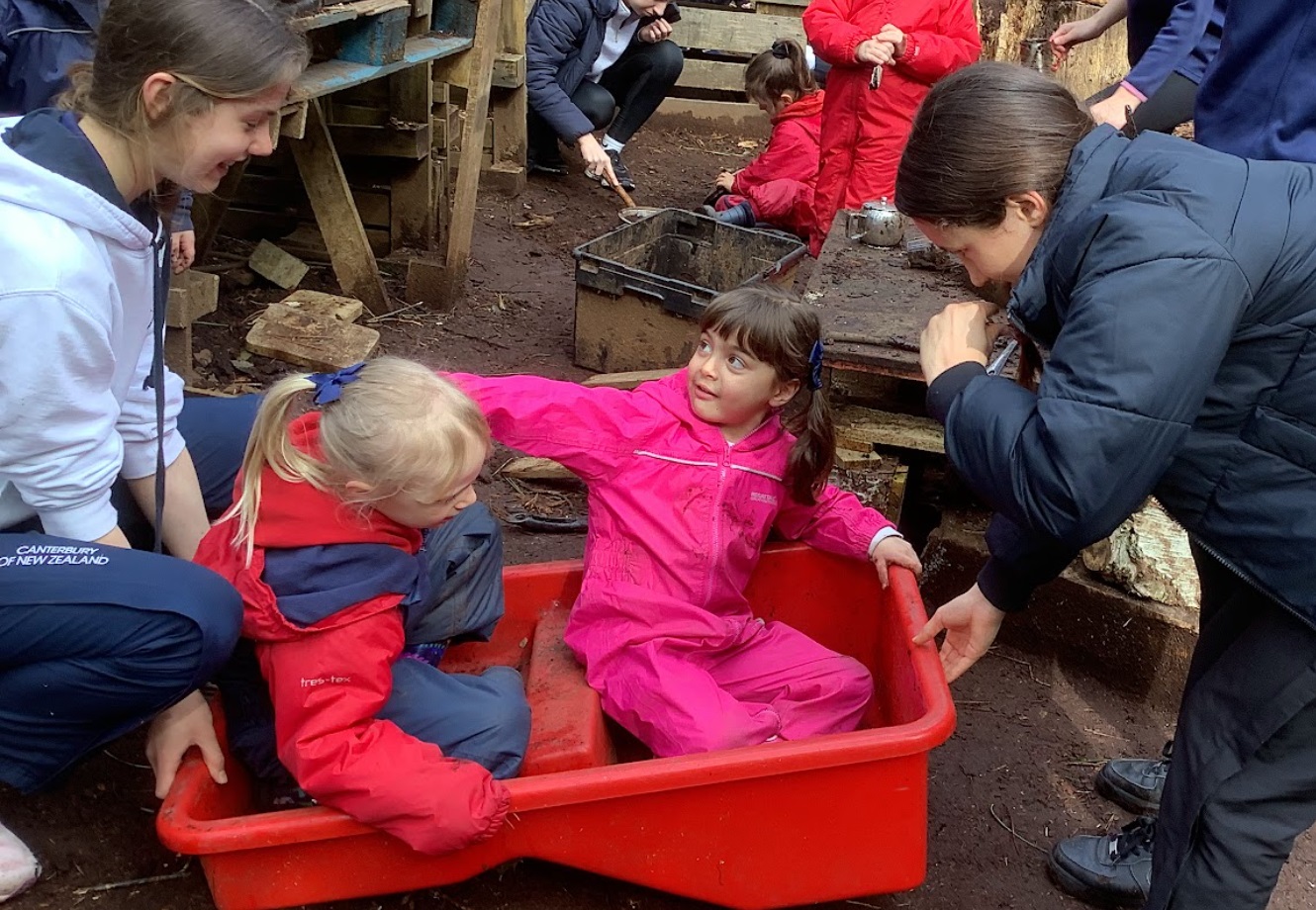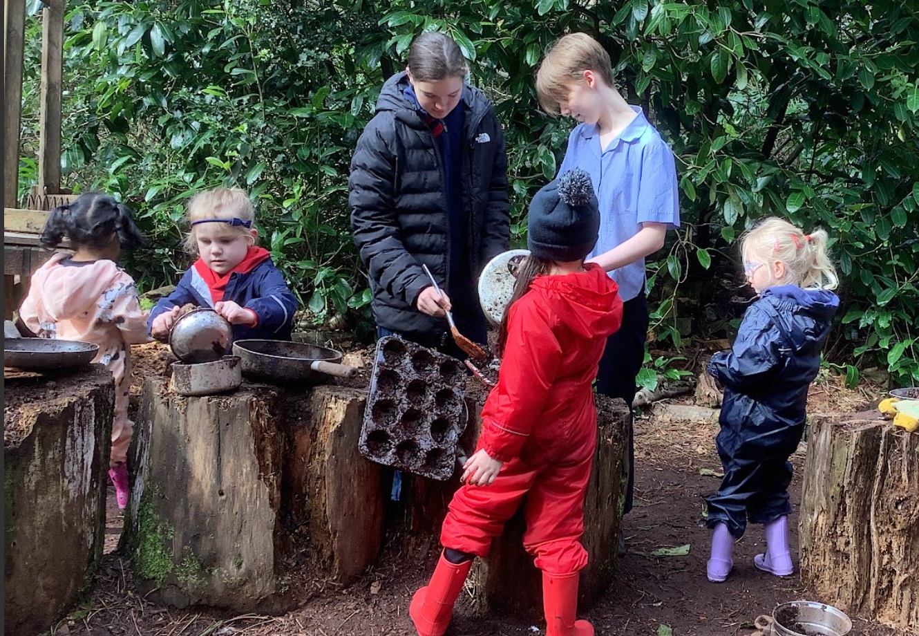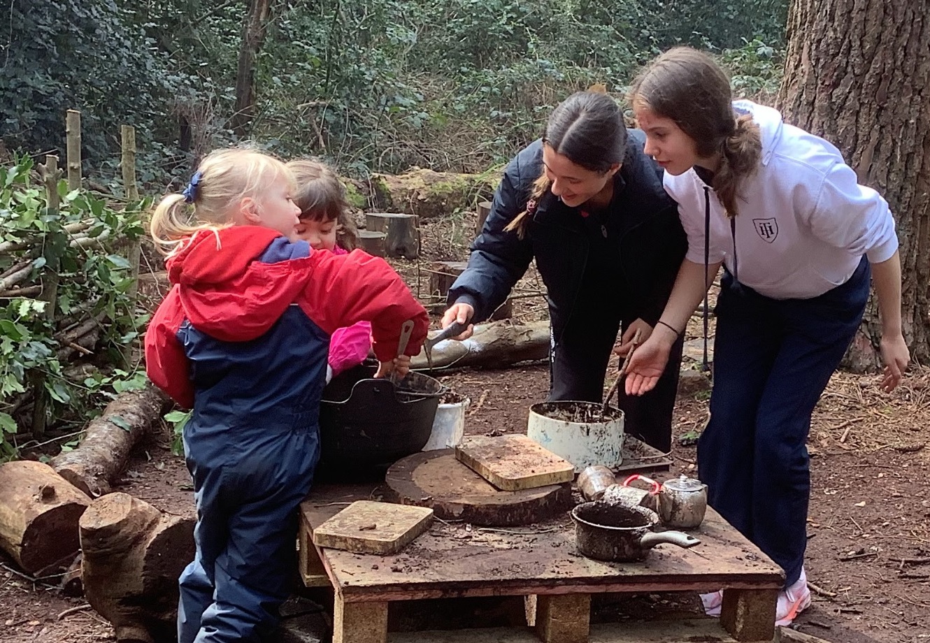 In the week before Easter break, Year 9 girls took part of their Outdoor Learning session to join the Reception class in Forest School. They chatted, played together, shared some hot chocolate and listened to a Mother’s Day song recited by the Reception children.