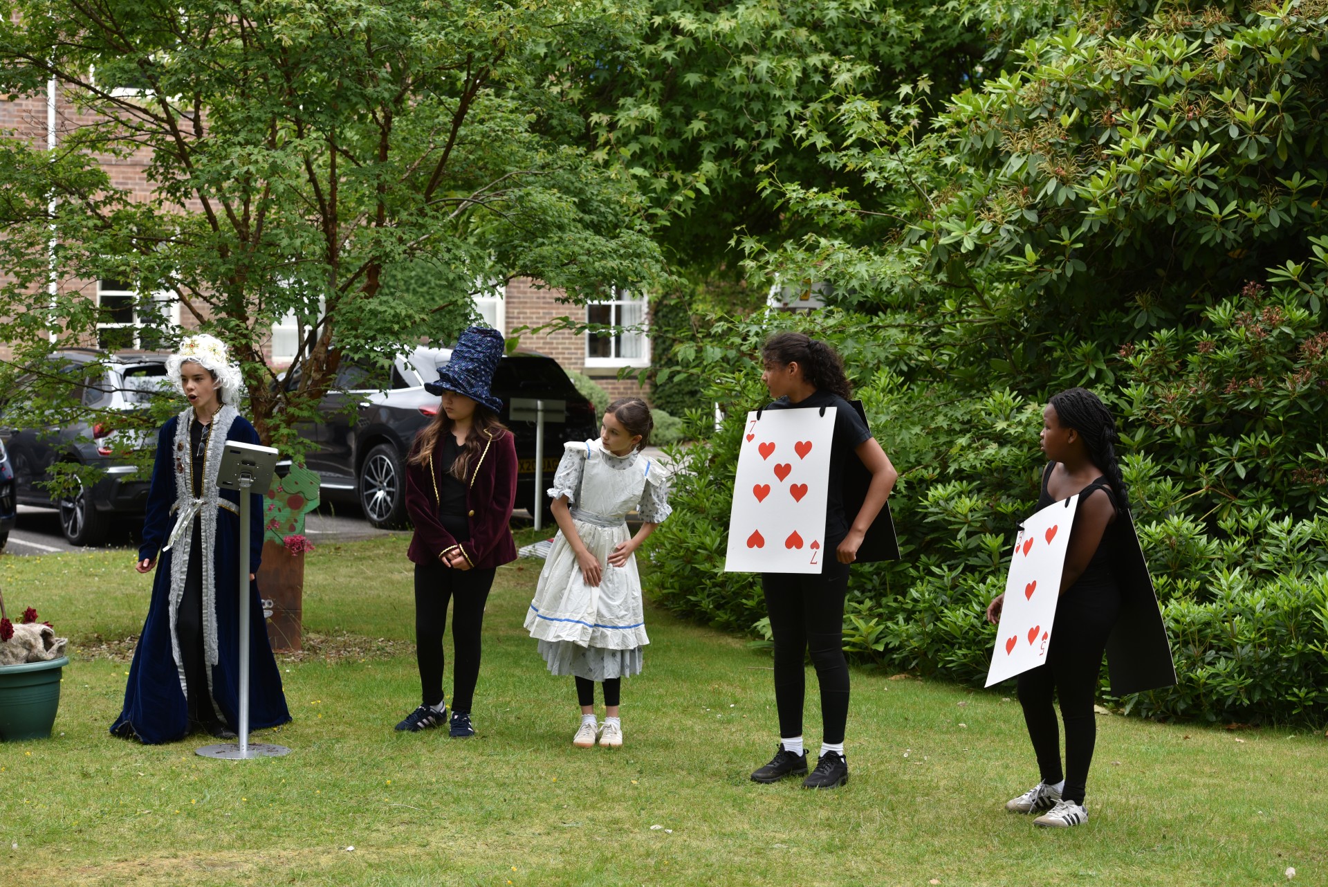 The KS3 Drama Club performed first on Flagpole Green with an abridged version of ‘Alice in Wonderland’ with eccentric characters and mystical set pieces; the students transported the audience to wonderland and created a fantastic performance they should all be very proud of.