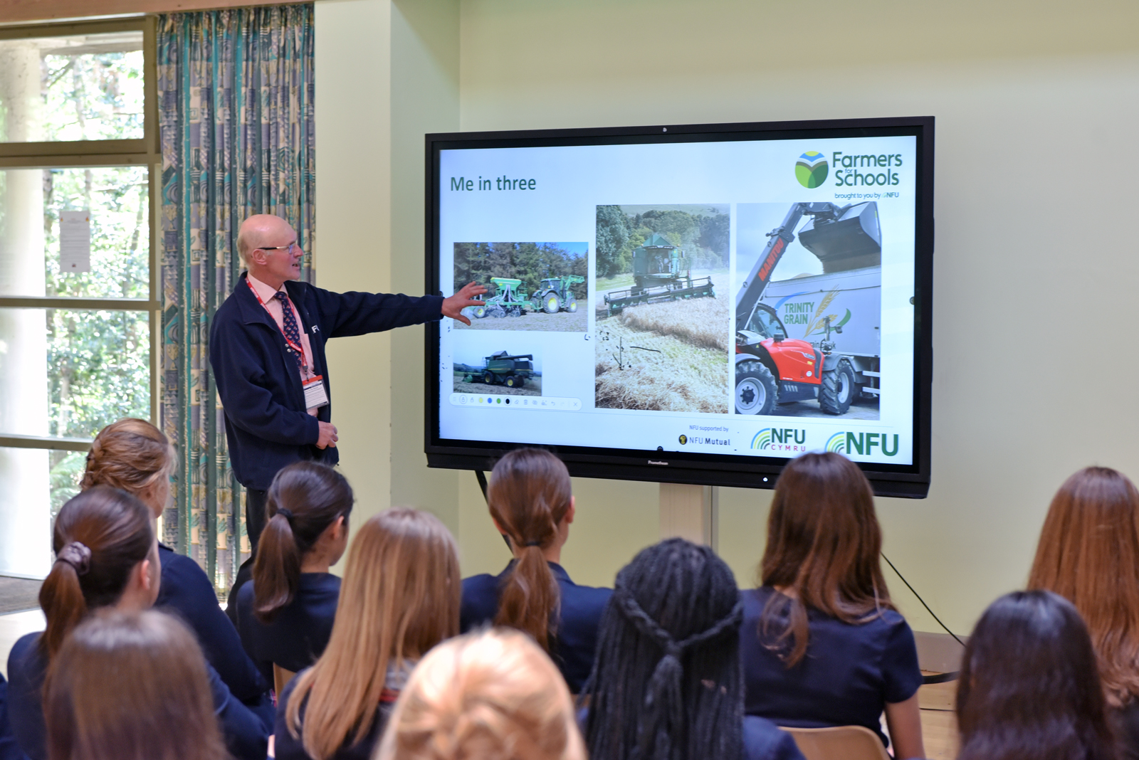 At the end of our Green Planet Week, Lower 4 and Upper 4 students had the chance to learn more about where their food comes from, straight from someone who works in the heart of British farming. Mark Jeffery, a real life ‘Mixed Farmer’ from Shaftesbury, owns a herd of dairy cows, keeps fields of sheep and grows crops such as wheat, barley and oats. He is also an ambassador for the National Farmers’ Union (NFU), and works with the Government to protect farmers’ rights. As part of the Farmers for Schools programme, Mark visited Talbot Heath to talk about the world of agriculture, answer our questions, and challenge us to think a little differently about what’s on our plates. Mark’s session wasn’t just about farming facts, it was about starting a conversation. He encouraged us to ask questions such as: How is our food grown? Who produces it? Where is it produced? What is the carbon footprint of our food? We were enlightened about the myths of sustainable farming, the production and life cycle of greenhouse gas from animals, climate change and the food supply chain from farm to supermarket.