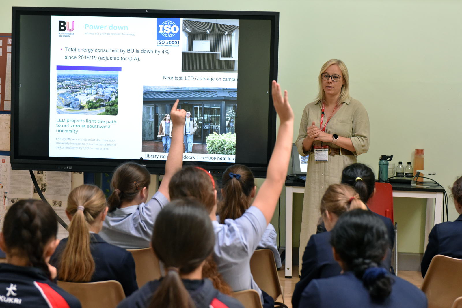 On Tuesday 20th May, both Upper 3 and Lower 6 year groups were each treated to an enlightening session with Lois Betts, the Sustainability Manager at our local Bournemouth University. Lois spoke passionately about the environmental journey at BU and how they have transformed many areas of their university life into a sustainable community. They have worked tirelessly to achieve the EcoCampus platinum award and various ISO certifications; BU is now ranked 8th in the world for sustainability! Students learnt about initiatives with their transport network, renewable energy solutions as well as a brilliant initiative with coffee cup recycling.