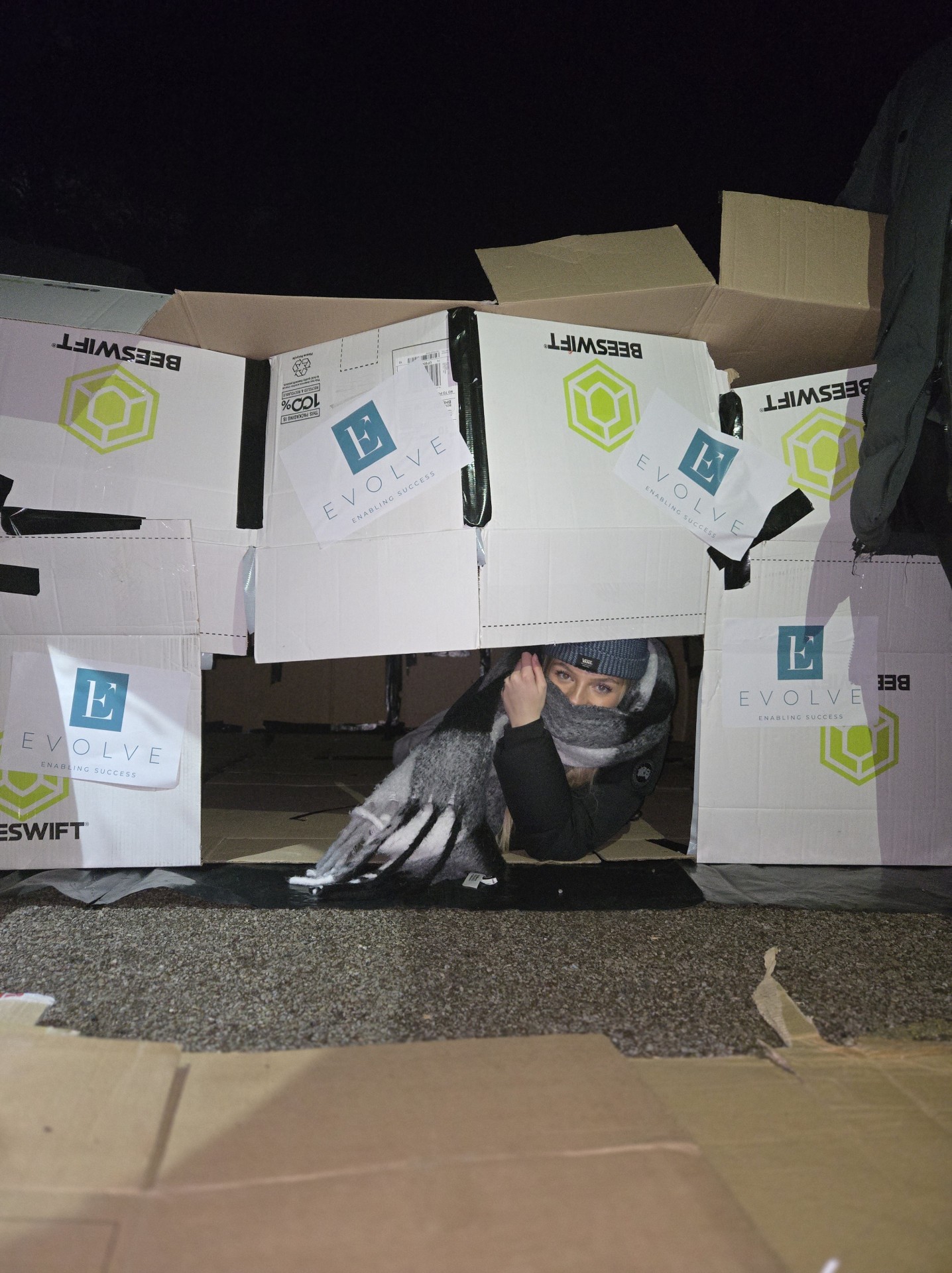 On Friday, 14th March, Talbot Heath Sixth Form students and several staff, took part in the ‘Sleep Easy’ event in support of YMCA Bournemouth. Braving the chilly night, they built makeshift shelters from cardboard boxes and experienced what it’s like to sleep rough. Despite the temperature dropping significantly, spirits remained high as students embraced the challenge with optimism, understanding the vital impact of their fundraising efforts.