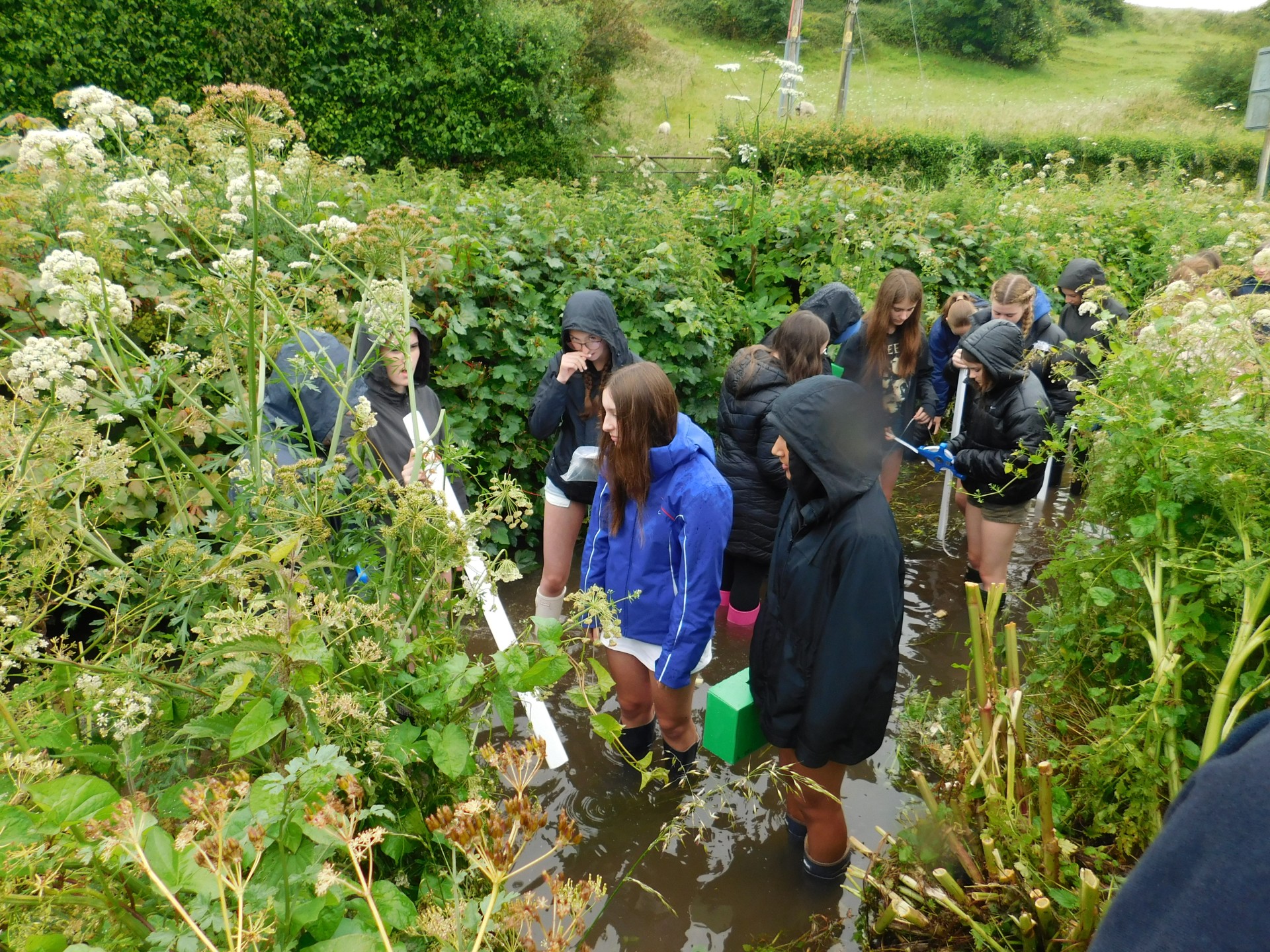 Staff accompanied 32 Lower 5 GCSE students to rainy Wareham in the Purbecks last week, to get very wet studying rivers in the rain to undertake their compulsory physical fieldwork enquiry. Undeterred by the torrential rain in the morning, Wellington boots and waterproofs were donned for investigations at the first site – PiddleTrenthide. Under the expert guidance of Mark from Leeson House Field Studies Centre the students enthusiastically waded into the river to measure channel width, depth and velocity. The impact of encroaching vegetation was noted and the sheep in the nearby field came to see what all the noise was about.