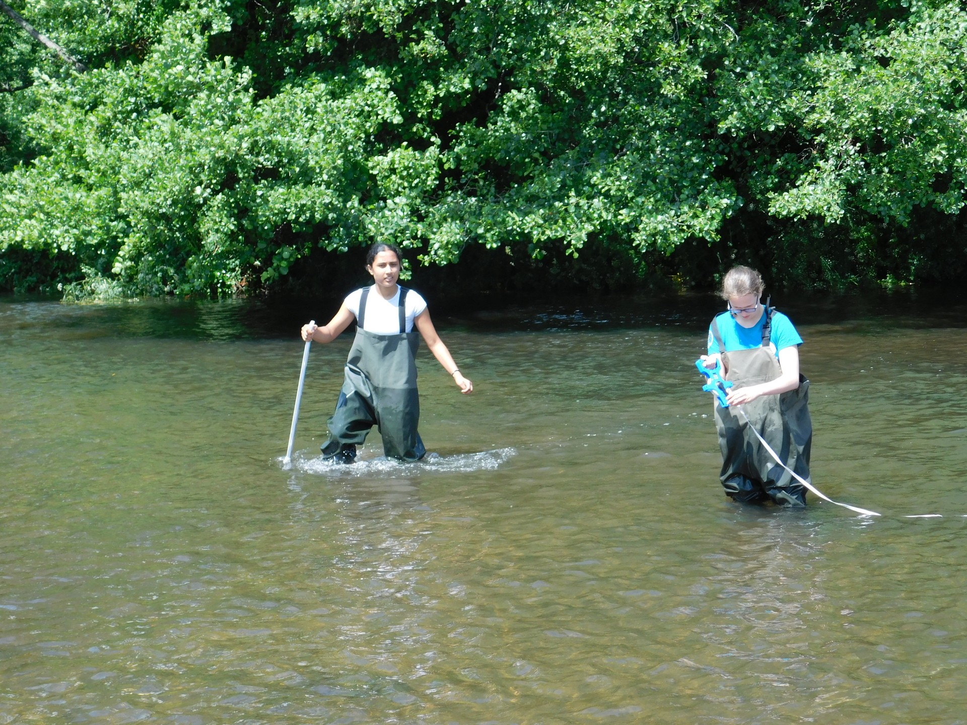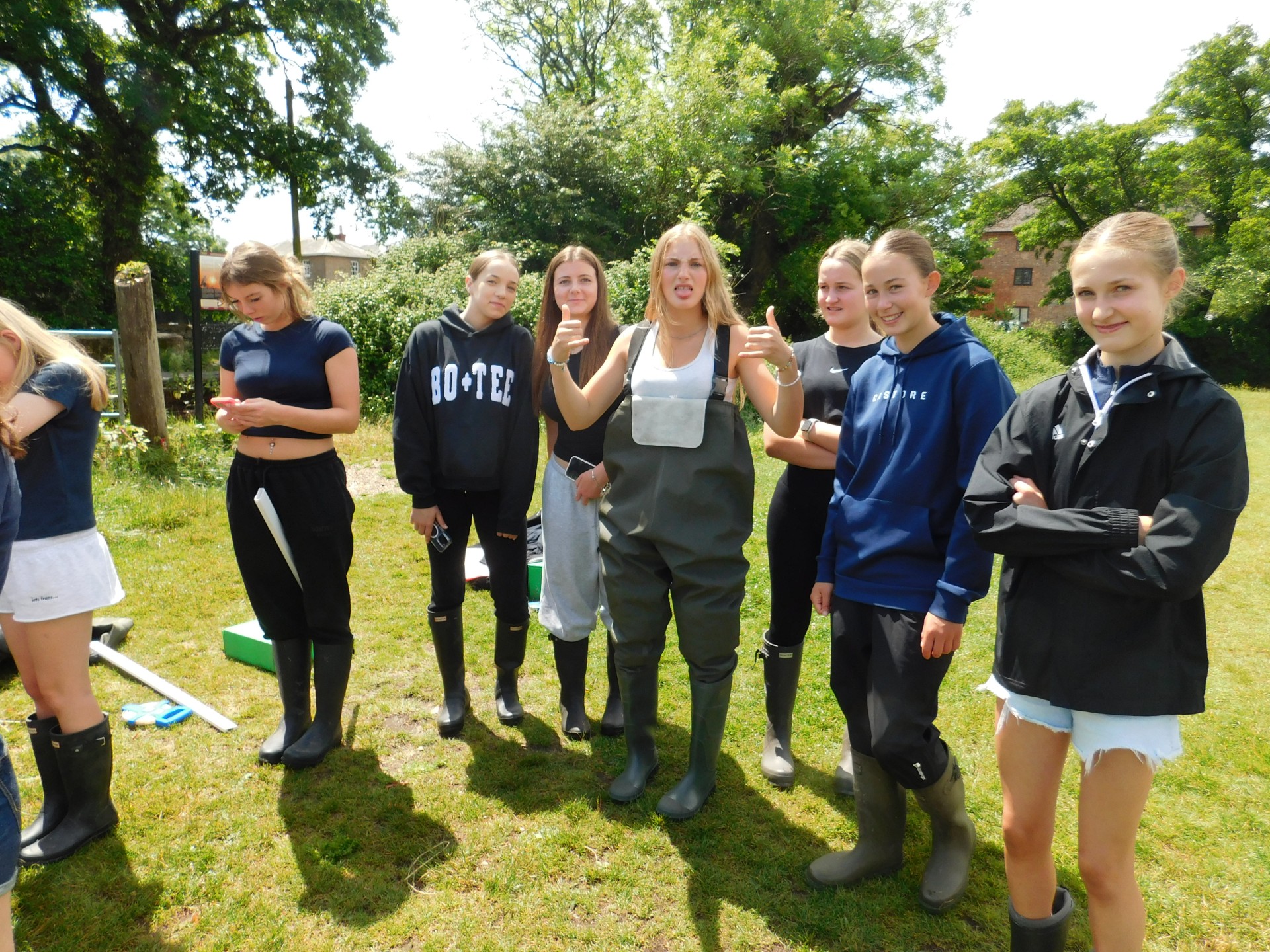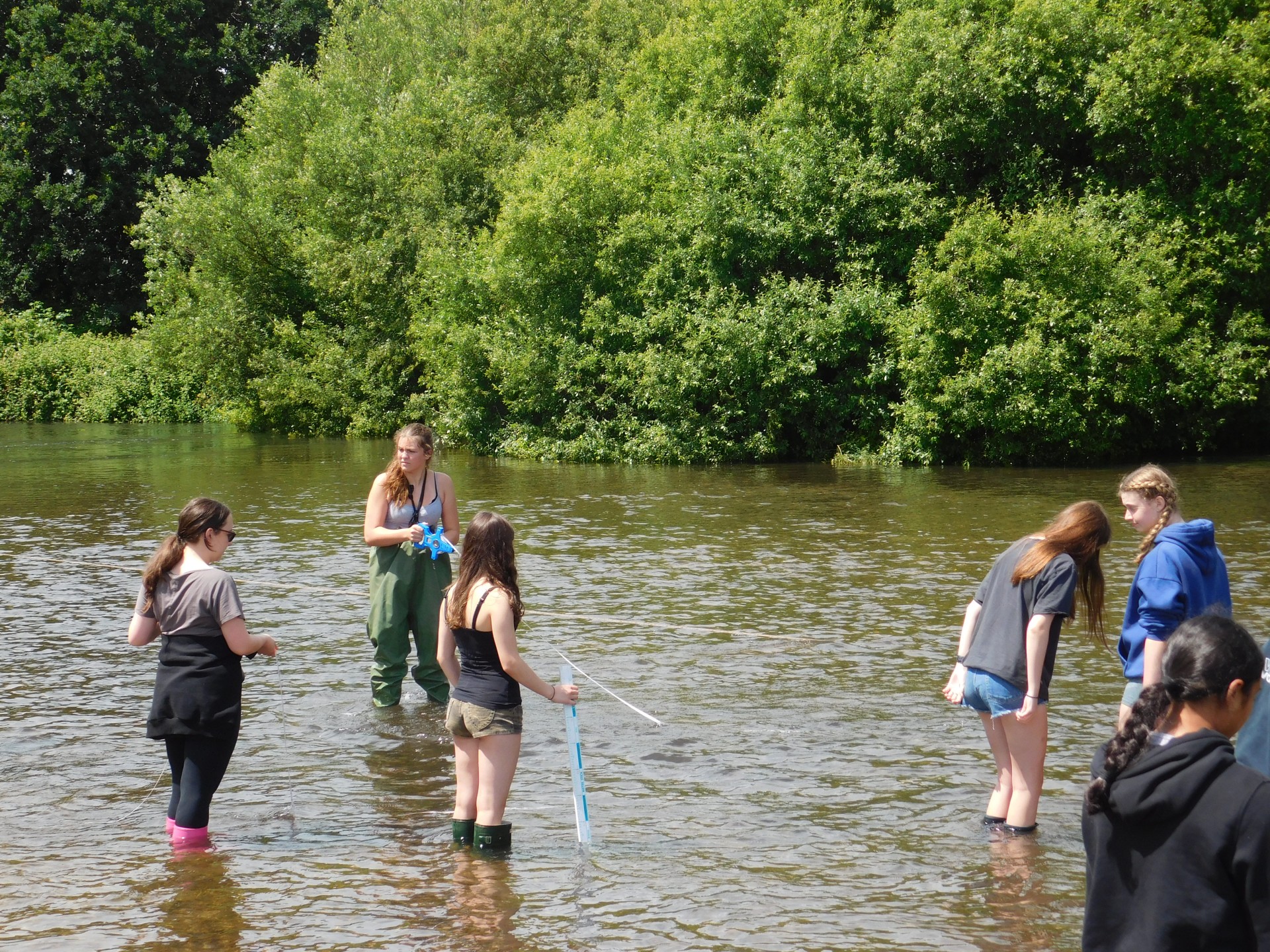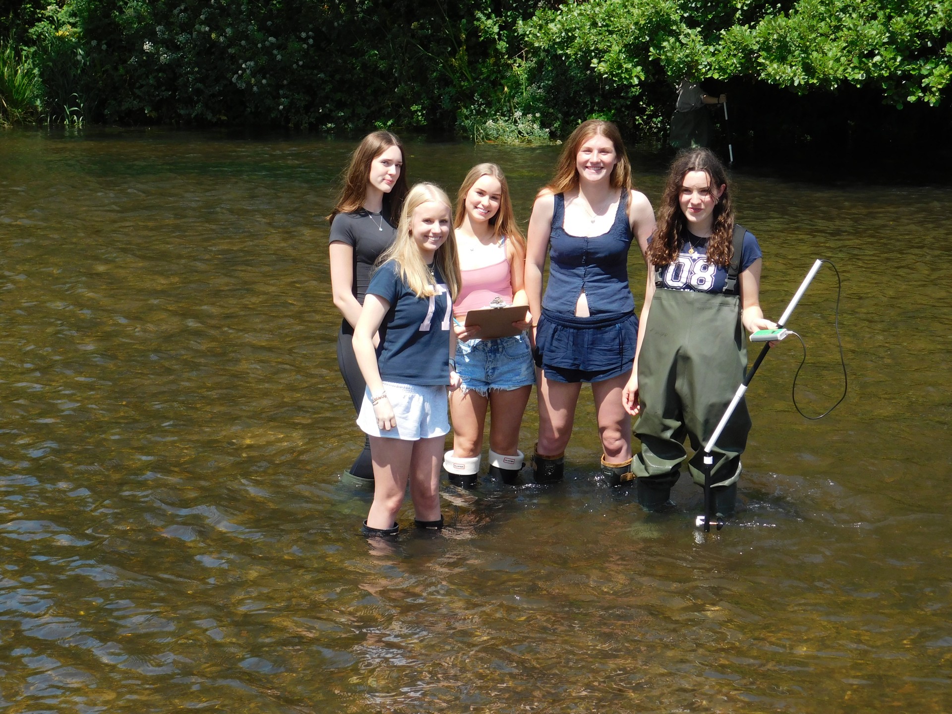 After a lunch break in Puddletown to dry out, everyone moved on to Wareham to see how the River Piddle had altered along its 30km course. Now in chest high waders, the students quickly noted the depth of the river varied across the meander and the velocity had increased. The floodplain now clearly visible the students used their class based knowledge to complete their booklets. By this point the sun had well and truly made an appearance and so a well deserved ice cream stop at Wareham Quay finished a brilliant day of fieldwork.