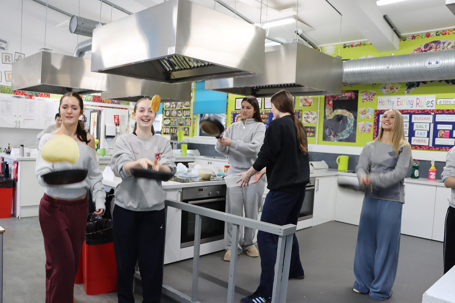 Our Year 11 French students had a fantastic time in their lesson as they tried their hand at making crêpes! Everyone bravely attempted a flip, with Bella proving herself the class champion of crêpe‑tossing. The girls achieved… let’s say… creative results, especially Elsie, whose uniquely shaped crêpes were so original that Madame Hazelton wasn’t quite tempted to taste them. Meanwhile, Yasmin and Miriam proudly took first prize for the most imaginative selection of toppings. A deliciously chaotic lesson all round!